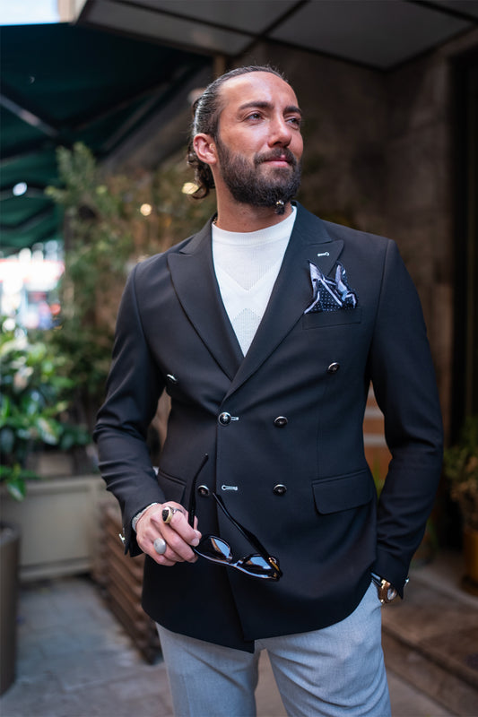 Mazonni Nero Men's Double-Breasted Blazer Formal Slim Fit Suit Jacket
