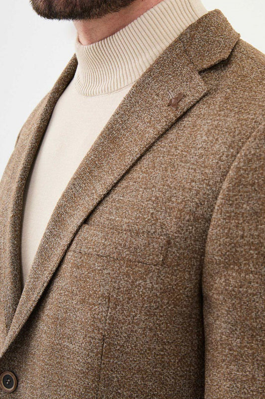 Mazonni Torino Wool Blazer Men's Brown Slim Fit Tweed Textured Suit Jacket