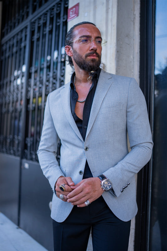 Mazonni Grigio Men's Light Grey Blazer Smart Casual Slim Fit Suit Jacket