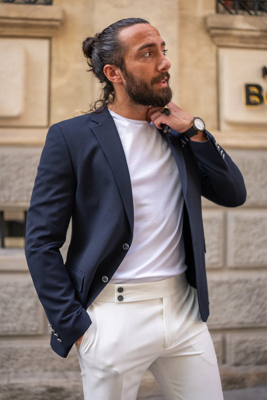 Mazonni Notte Men's Navy Blue Blazer Smart Casual Slim Fit Suit Jacket