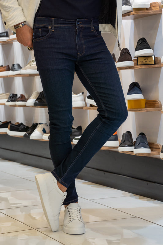 Mazonni Elan Skinny Fit Men's Jeans – Dark Blue Stretch Denim Pants