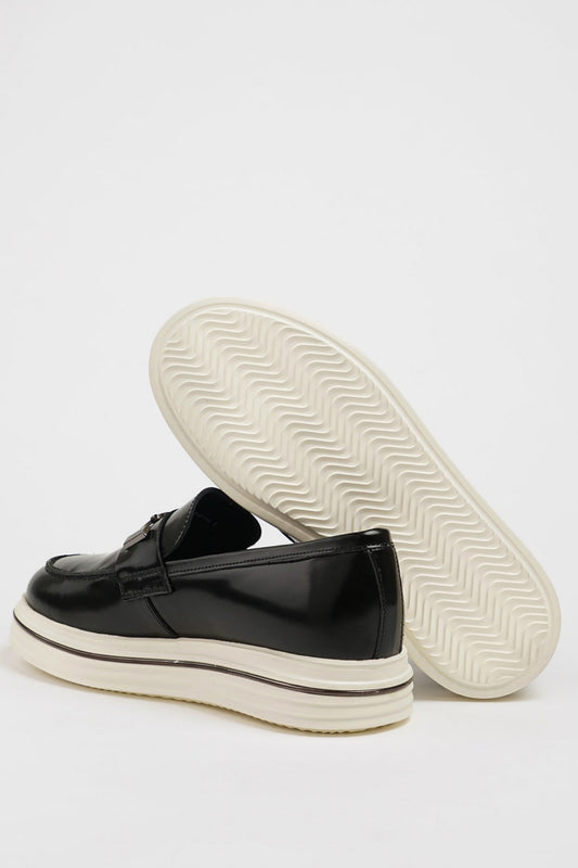 Mazonni Elevato Men's Black Leather Loafers with Metal Buckle and Chunky Sole