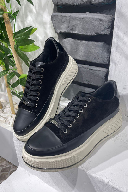 Mazonni Vortex Men's Black Suede and Leather Chunky Sole Street Sneakers