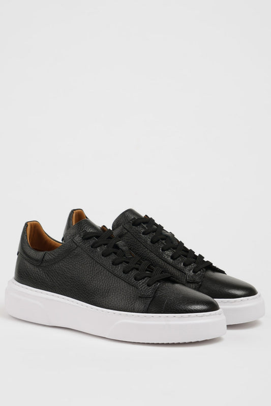 Mazonni Nightstep Men's Black Leather Sneakers Minimal Street Style Shoes