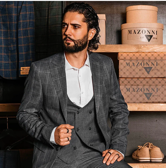 Mazonni Roma Grey Houndstooth Men’s Suit Jacket Classic Formal Blazer