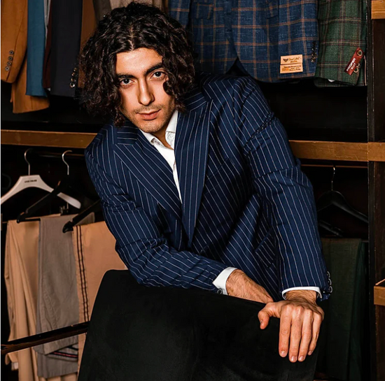 Mazonni Milano Men’s Navy Wool Short Coat Modern Classic Winter Overcoat
