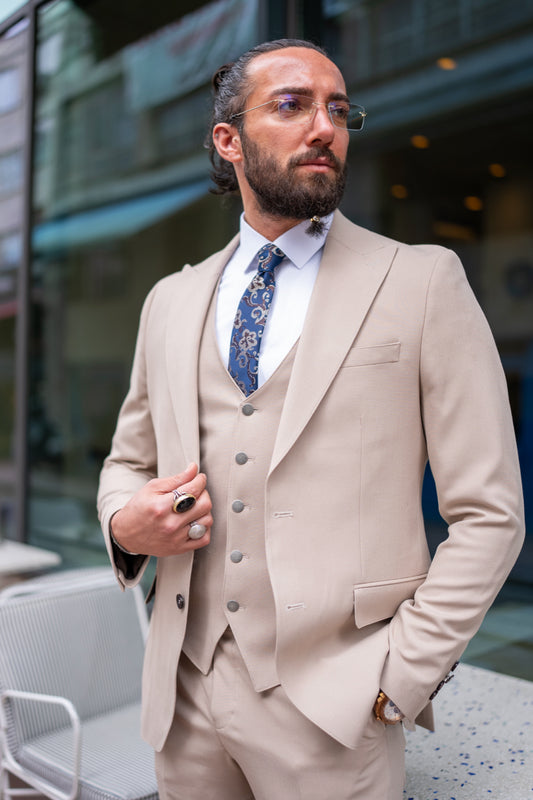 Mazonni Palermo Three-Piece Beige Men's Summer Wedding Formal Suit
