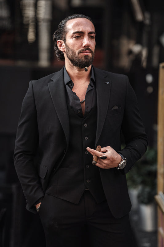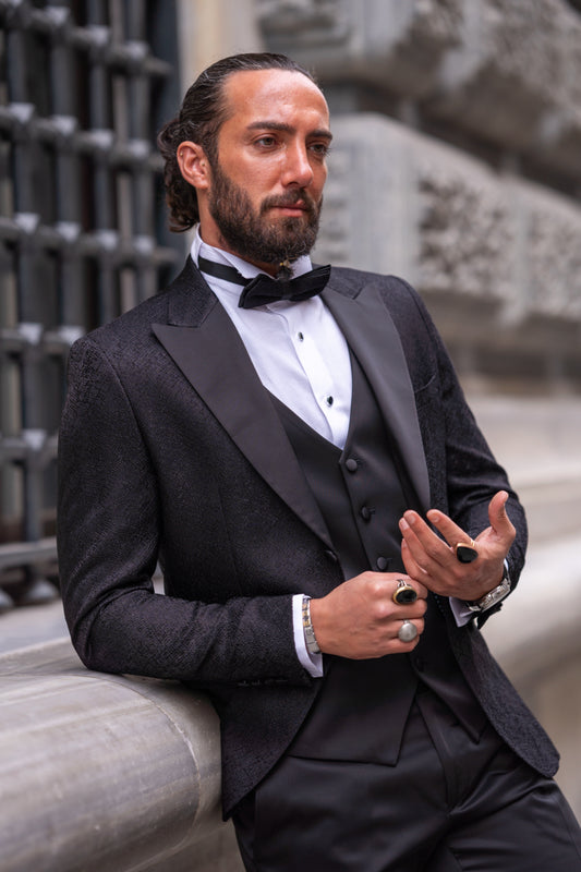 Mazonni Nero Noir Three-Piece Black Men's Slim Fit Evening Suit