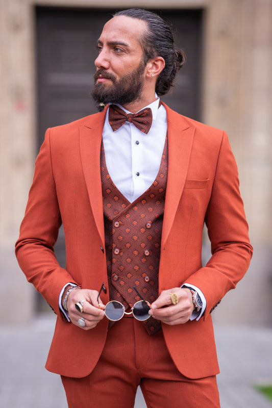 Mazonni Torino Three-Piece Burnt Orange Men's Fashion Wedding Suit