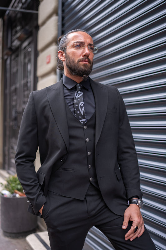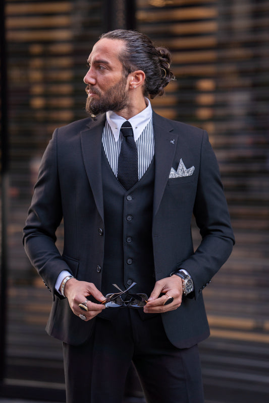 Mazonni Milano Three-Piece Black Men's Slim Fit Urban Formal Suit