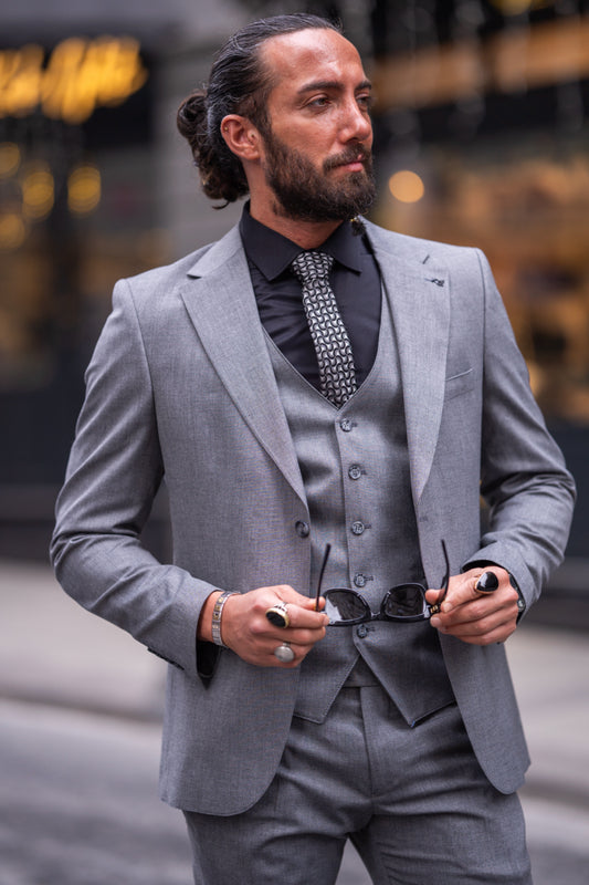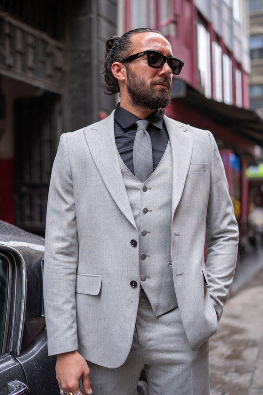 Mazonni Cortese Three-Piece Light Grey Men's Slim Fit Summer Suit