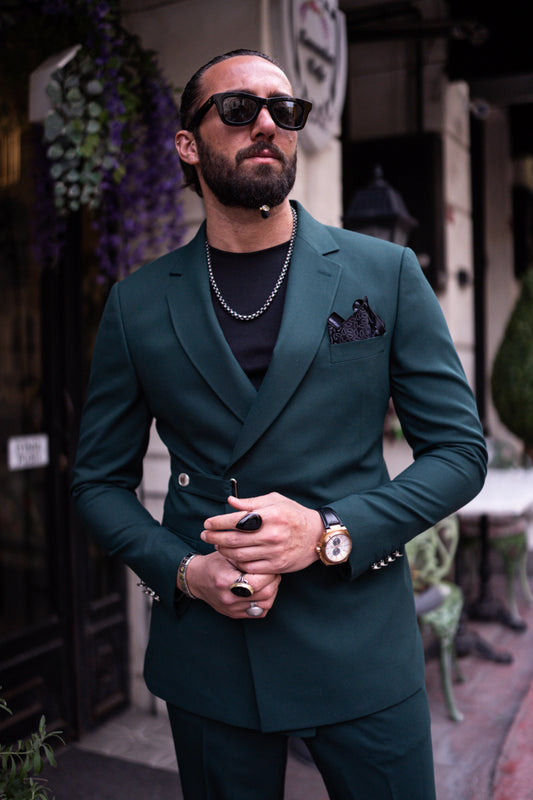 Mazonni Verde Men's Green Slim Fit Suit Set Modern Elegant Casual Look