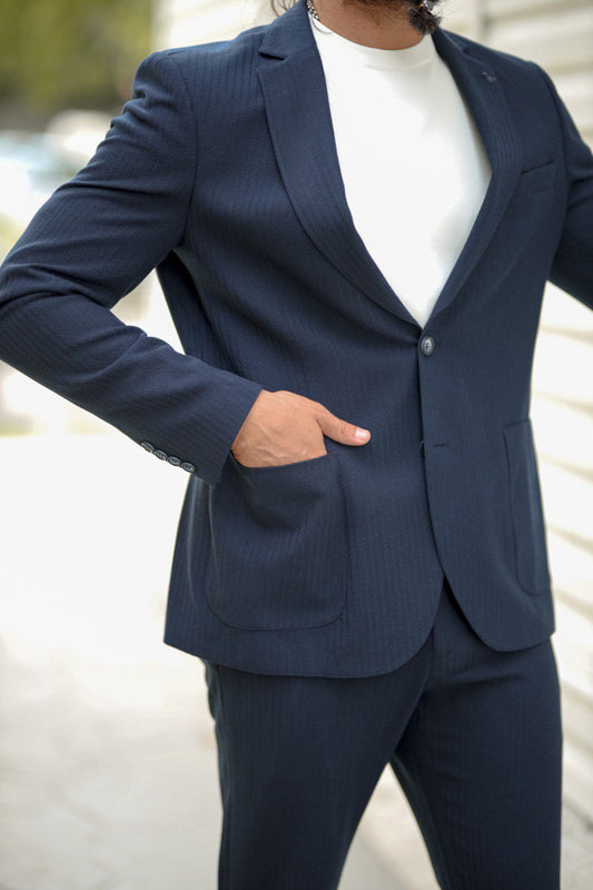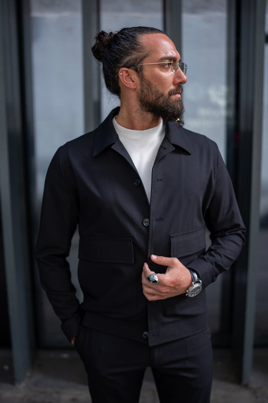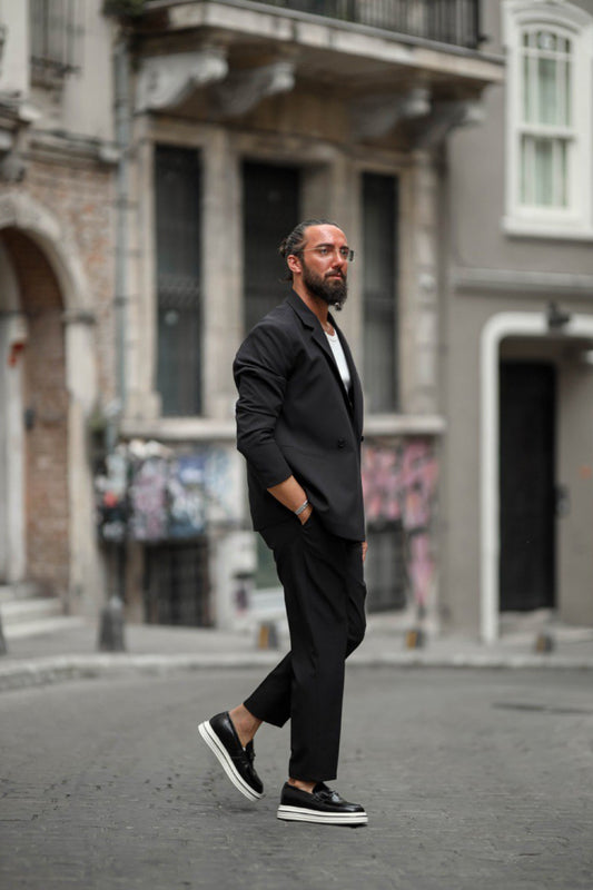 Mazonni Nero Men's Black Minimalist Suit Set Smart Casual Urban Outfit