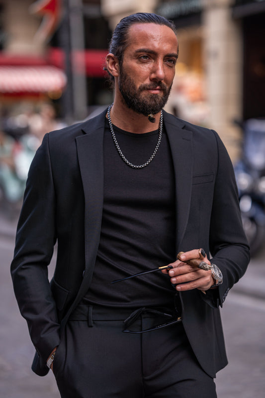 Mazonni Veloce Men's Black Slim Fit Suit Set Modern Streetwear Style