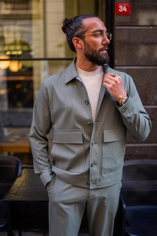 Mazonni Saggio Men's Sage Green Casual Suit Set Modern Minimalist Look
