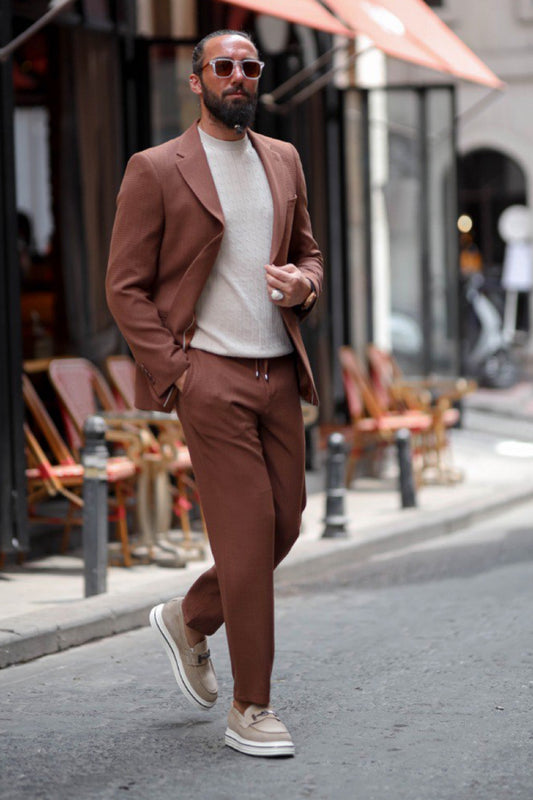 Mazonni Terra Men's Brown Casual Suit Set Modern Relaxed Street Style