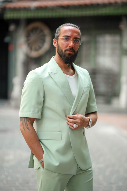 Mazonni Menta Men's Mint Green Short Sleeve Suit Set Summer Smart Casual